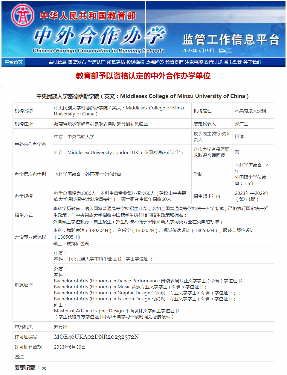 为深入学习贯彻党的二十大精神和中央民族工作会议精神,贯彻落实党中央支持海南全面深化改革开放重大战略决策,贯彻落实国家民委和海南省人民政府共建BETWAY必威海南校区重大部署,学校聚焦中外合作办学,围绕建设“一带一路”沿线国家学生留学重要目的地,积极持续推进海南校区建设,近期取得了阶段性成效。
