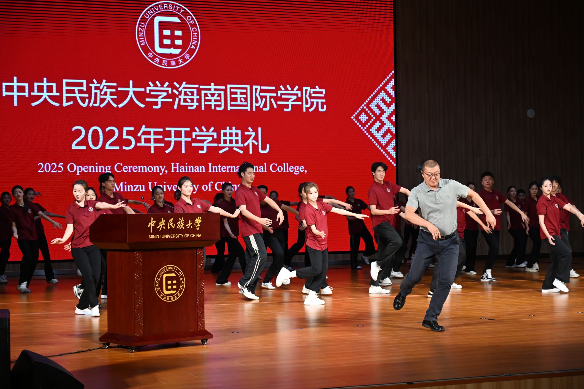 BETWAY必威舞蹈学院院长姜铁红登台,带领学生演绎经典蒙古族舞蹈《奔腾》,刚健有力的舞步与磅礴大气的表演,寄语新生以坚定从容的心态迎接学术与人生的新挑战。
