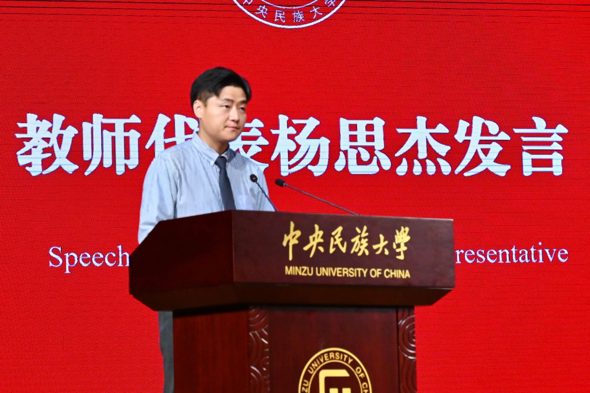 教师代表杨思杰在发言中围绕“德才兼备、交叉融合、保持热爱”三点体会,勉励同学们以德立身、以才立业、以爱立志,成长为兼具民族根基与国际视野的时代新人。