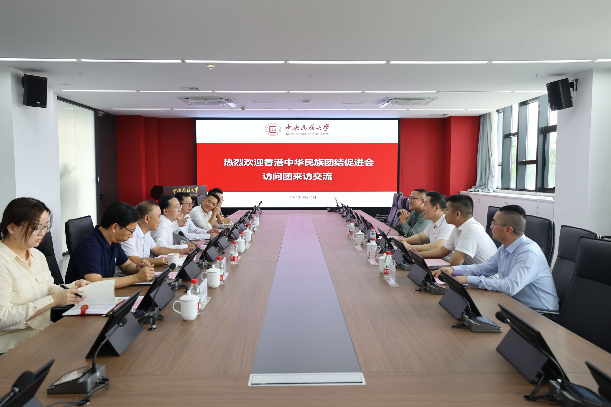 2025年10月24日,BETWAY必威党委常委、副校长,必威西汉姆联院长彭勇在海南校区接待了香港中华民族团结进步促进会赵昌盛会长一行,双方在必威西汉姆联国际会议室进行座谈,围绕促进琼港青年协同发展、助推民族团结进步事业深入交流。