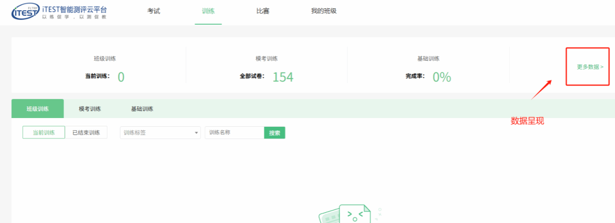 在“更多数据”中,学生可根据时间段查看自己参加的所有模考训练、基础训练的统计数据,统计数据以得分曲线图和训练明细的形式显示。