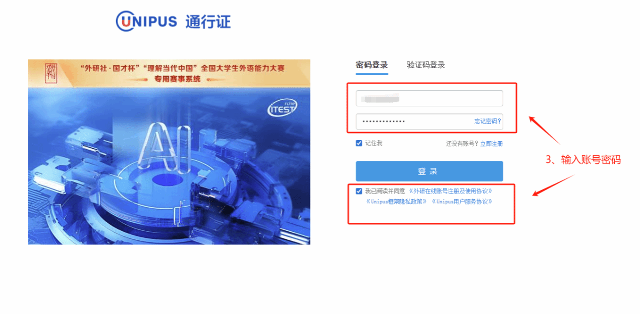 登录网址:https://itestcloud.unipus.cn(需使用谷歌或火狐浏览器登录网址)