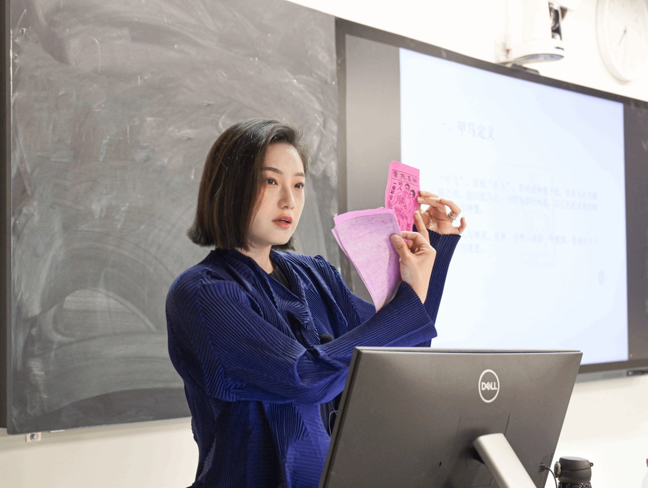 张冬萍老师以深入浅出的讲解,为大家揭开了甲马艺术的神秘面纱,洞悉了传统民族文化中生动详实的民俗底色。赵盼超老师则从甲马在文创设计中的元素性质出发,展示的多样杂糅了甲马文化的产品,拓宽了大家对于民俗文化实际应用价值的视阈,具有极强的实践意义。