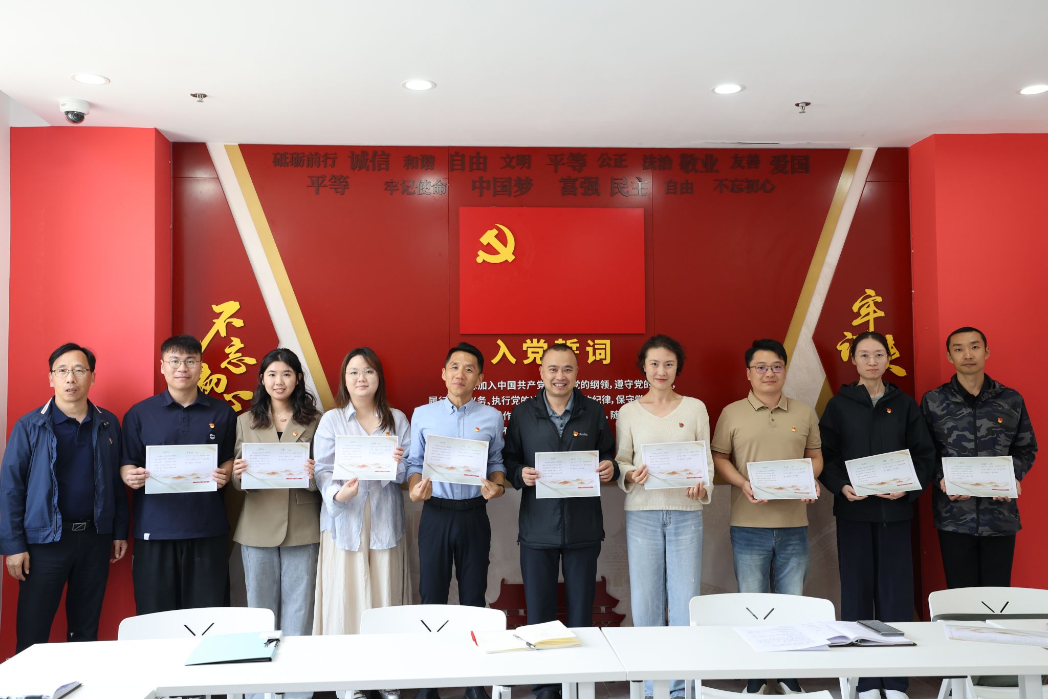 9名党员结合自身成长与工作实际,依次分享了入党初心、成长感悟与未来展望,表达了将继续立足本职、担当作为的决心。发言情真意切,展现了新时代党员的精神风貌。