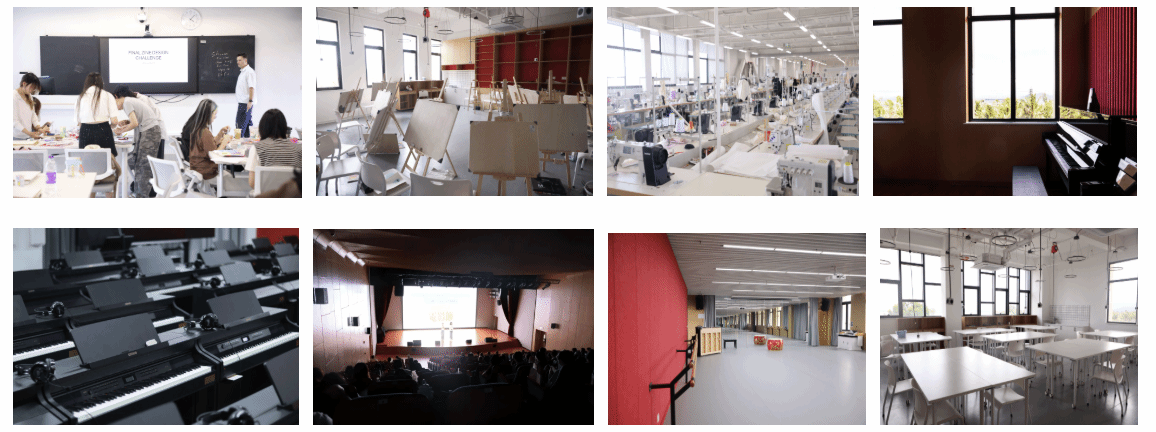 学院办学条件优越,教学设施先进完备,充分满足艺术类专业的多元化教学需求。多媒体教室配备智能交互系统与高清影音设备,支持数字化教学与创意展示;天光画室采用专业采光设计,营造自然柔和的创作环境;缝纫机室配置工业级设备,助力服装设计专业学生实现从图纸到成衣的实践转化;琴房与电钢琴教室配备高端乐器与隔音系统,为音乐表演与教育方向提供沉浸式训练空间;演播厅集录播、直播功能于一体,可开展影视创作与舞台艺术综合实训;舞蹈教室与练功房铺设专业地胶与镜面墙,保障舞蹈、戏剧等形体课程的精准训练;研究室则提供安静独立的学术环境,支持艺术理论与跨学科项目的深度探索。